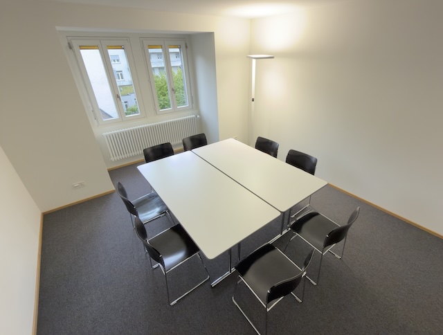 Das Sitzungszimmer Sofia eignet sich für Gruppen bis zu 12 Personen. Dieser Raum bietet den idealen Rahmen für eine Besprechung, Sitzung, Therapie oder Beratung. An Infrastruktur stehen zwei Tische (180x80cm, zusammenklappbar), Stühle und ein Flipchart bereit.
